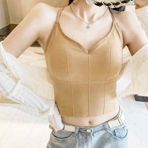 カップ付きキャミ Vネック レディース