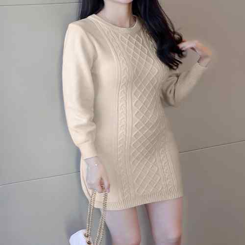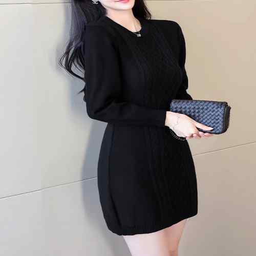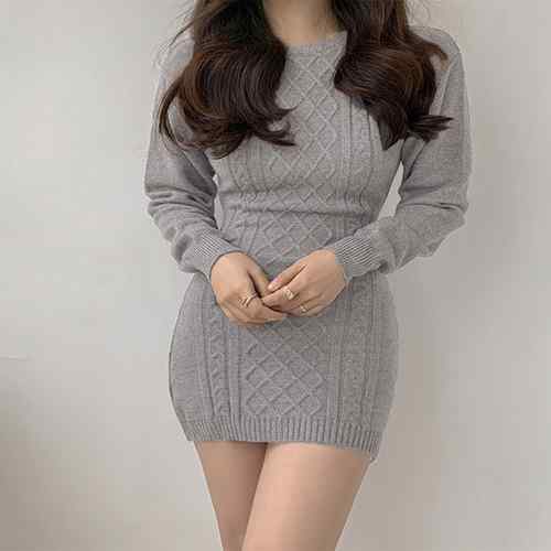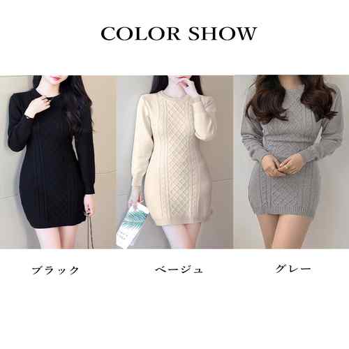 タイトワンピース クルーネック ケーブ