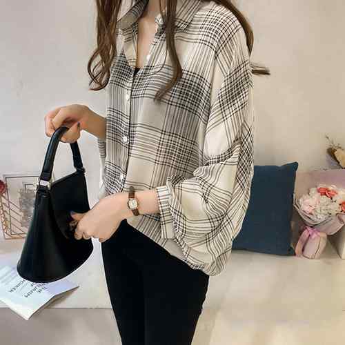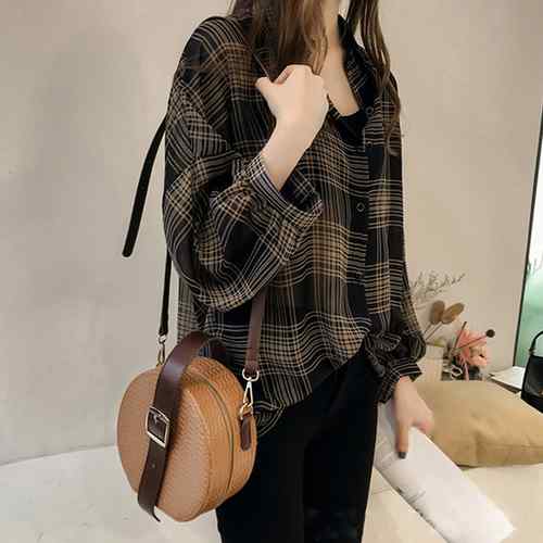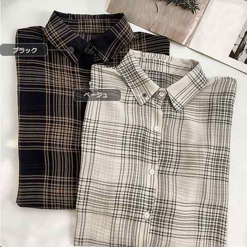 レディース チェックシアーシャツ 長袖