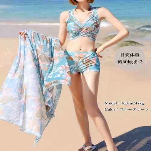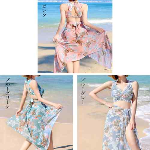 花柄水着セット ホルターネックタンキニ