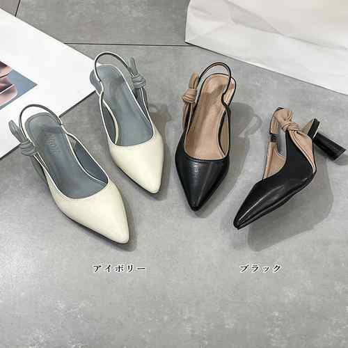 オフィスカジュアル 美脚 リボンパンプ
