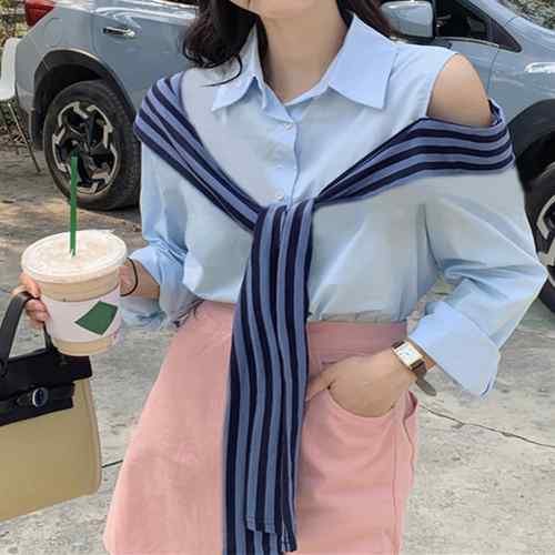 肩開きカットアウトシャツ レディース