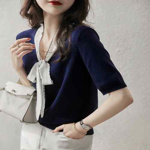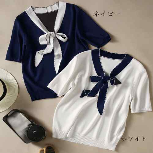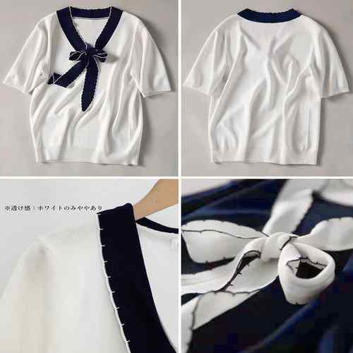 レディース 春夏半袖ニットソー 着やせ