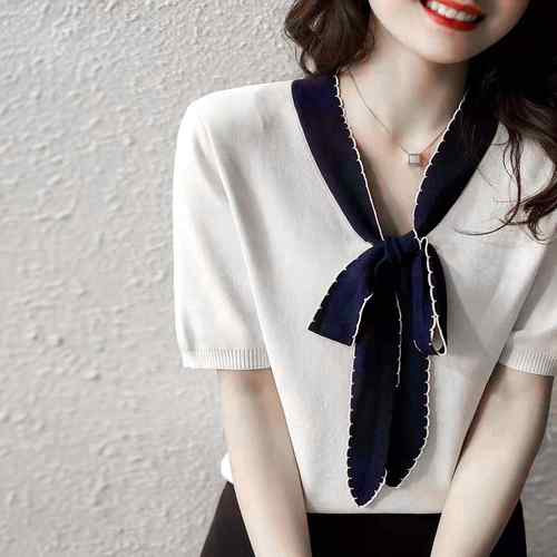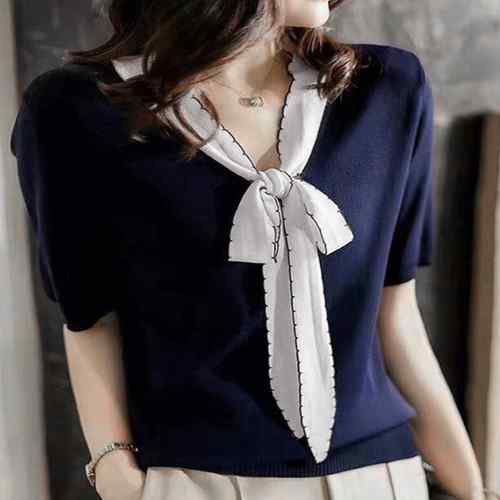 シアースリーブ ドッキングシャツ ボウタイシャツブラウス