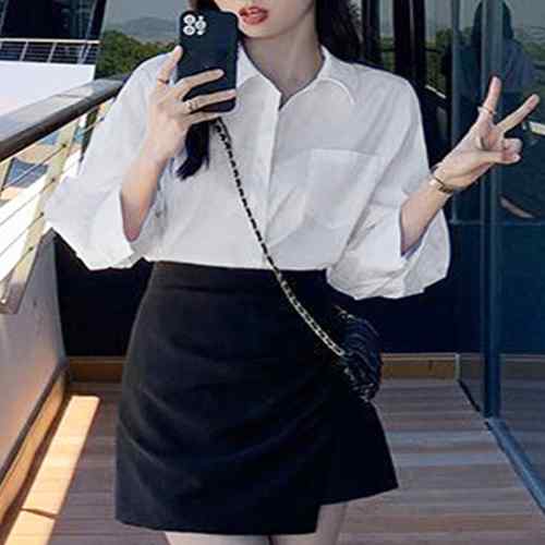 シアースリーブ ドッキングシャツ ボウタイシャツブラウス