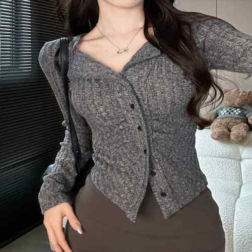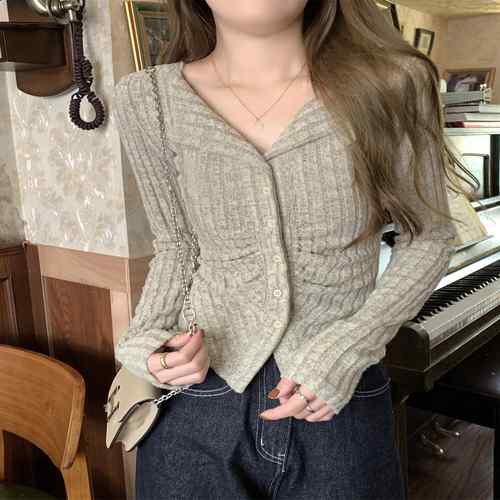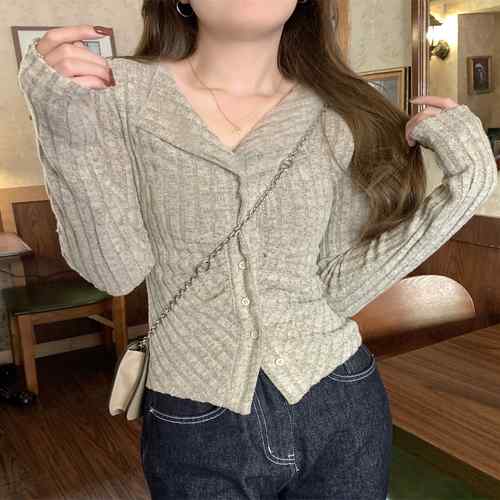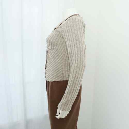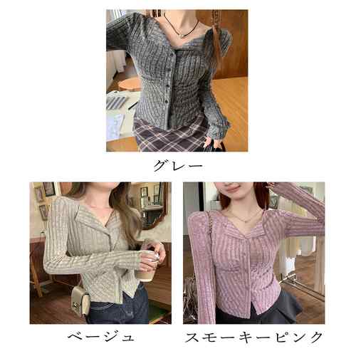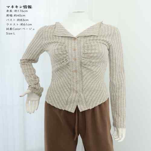 ニットトップス 前開き 編み フィット