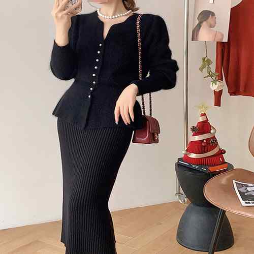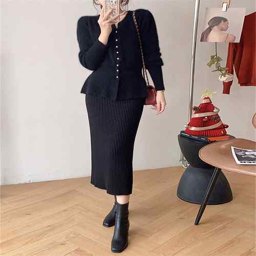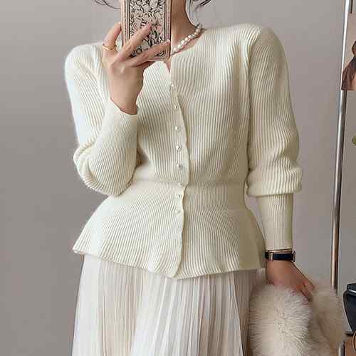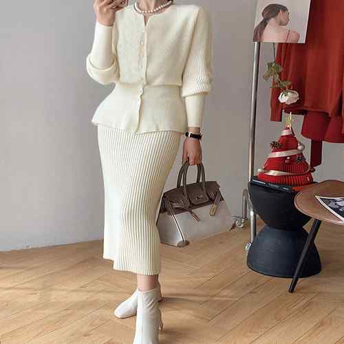 アンサンブルニット ペプラムカーディガ