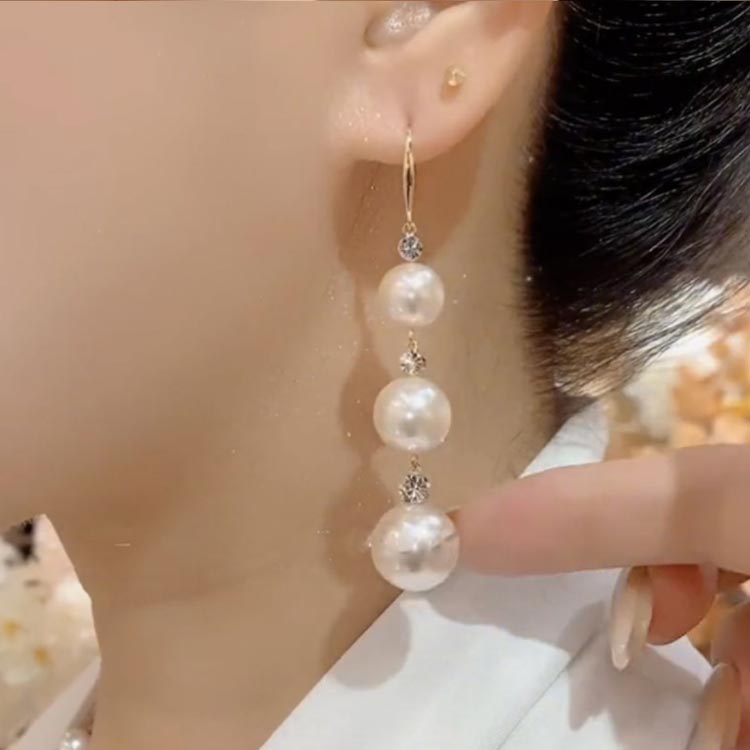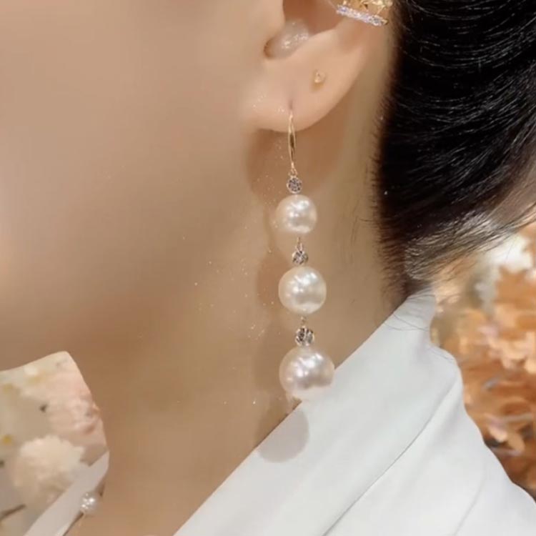 ぶらさがり ロングピアス パール3連ピ