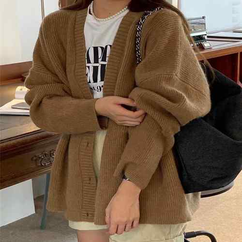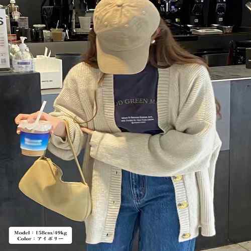 レディーストップス 長袖カーデ 無地セ