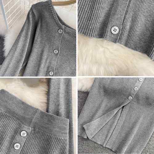 ショート丈 ニットトップス ボタン開き