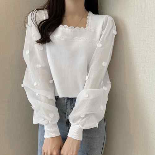 レディース 大人可愛い 長袖ニットドッ