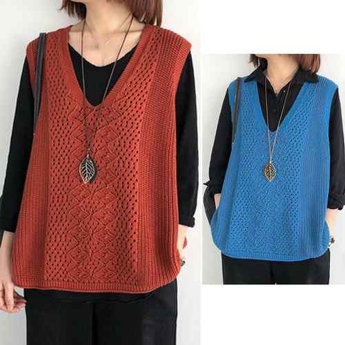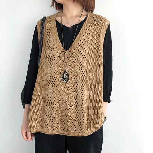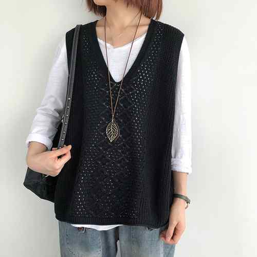 ノースリーブ ニットトップス Vネック