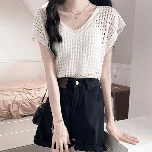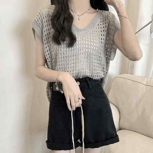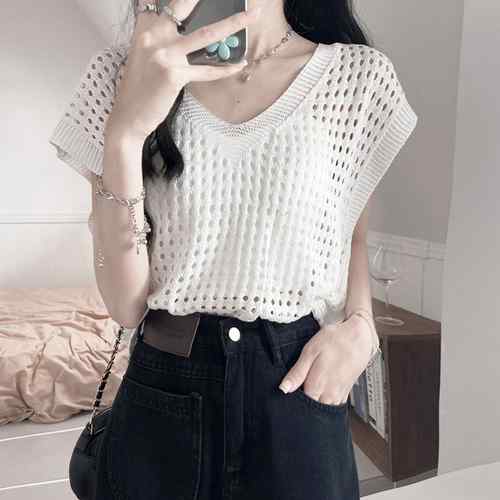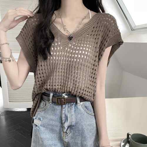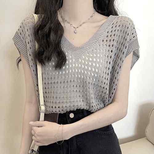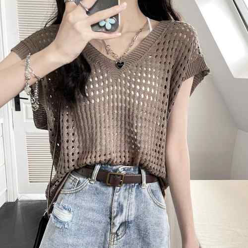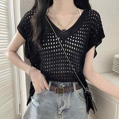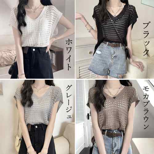 レディース 透かし編みトップス 肌見せ