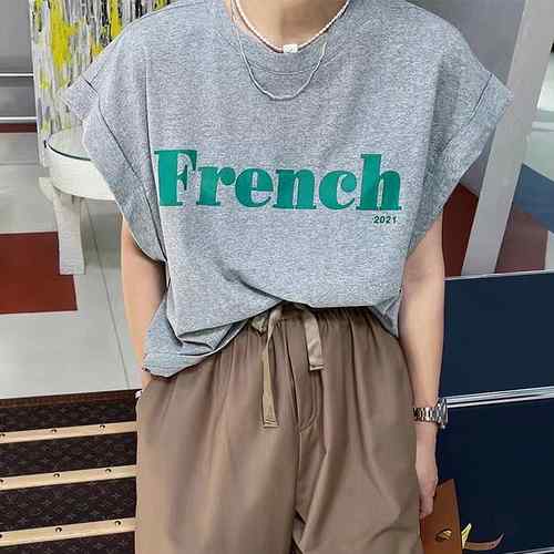タンクトップレディースTシャツノースリーブUネックロゴプリント