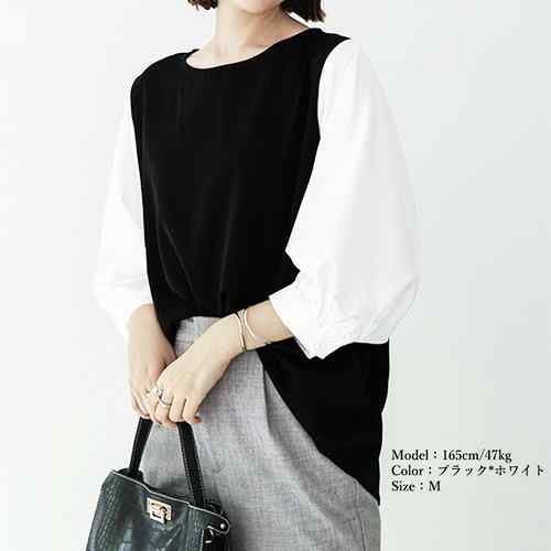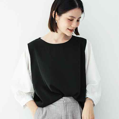 シアースリーブ ドッキングシャツ ボウタイシャツブラウス