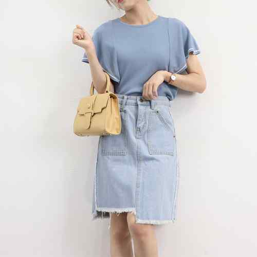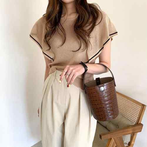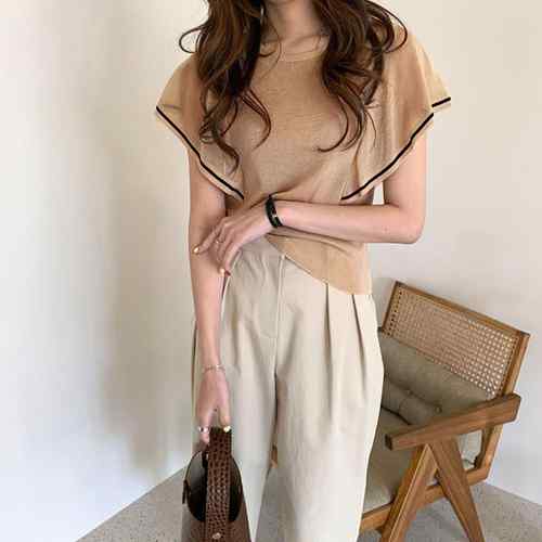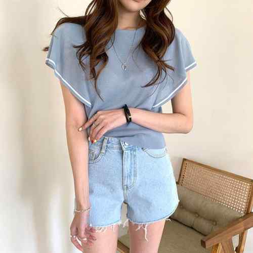 クルーネック ニットソー 半袖 トップ