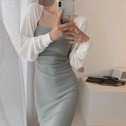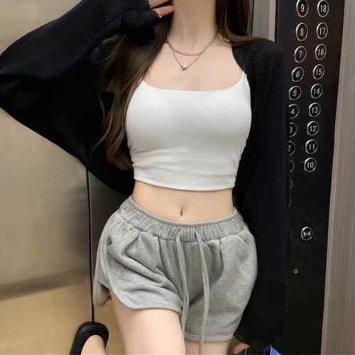 レディース クロップド丈 リブニットカ