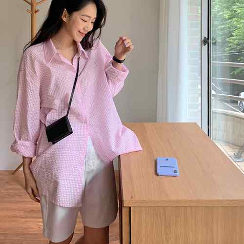 ピンク格子縞 長袖トップス おしゃれ