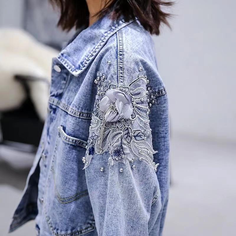 デニムパンツ ビジュー付き