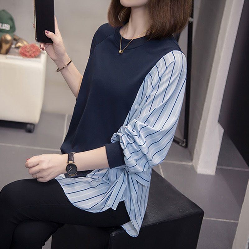 シアースリーブ ドッキングシャツ ボウタイシャツブラウス