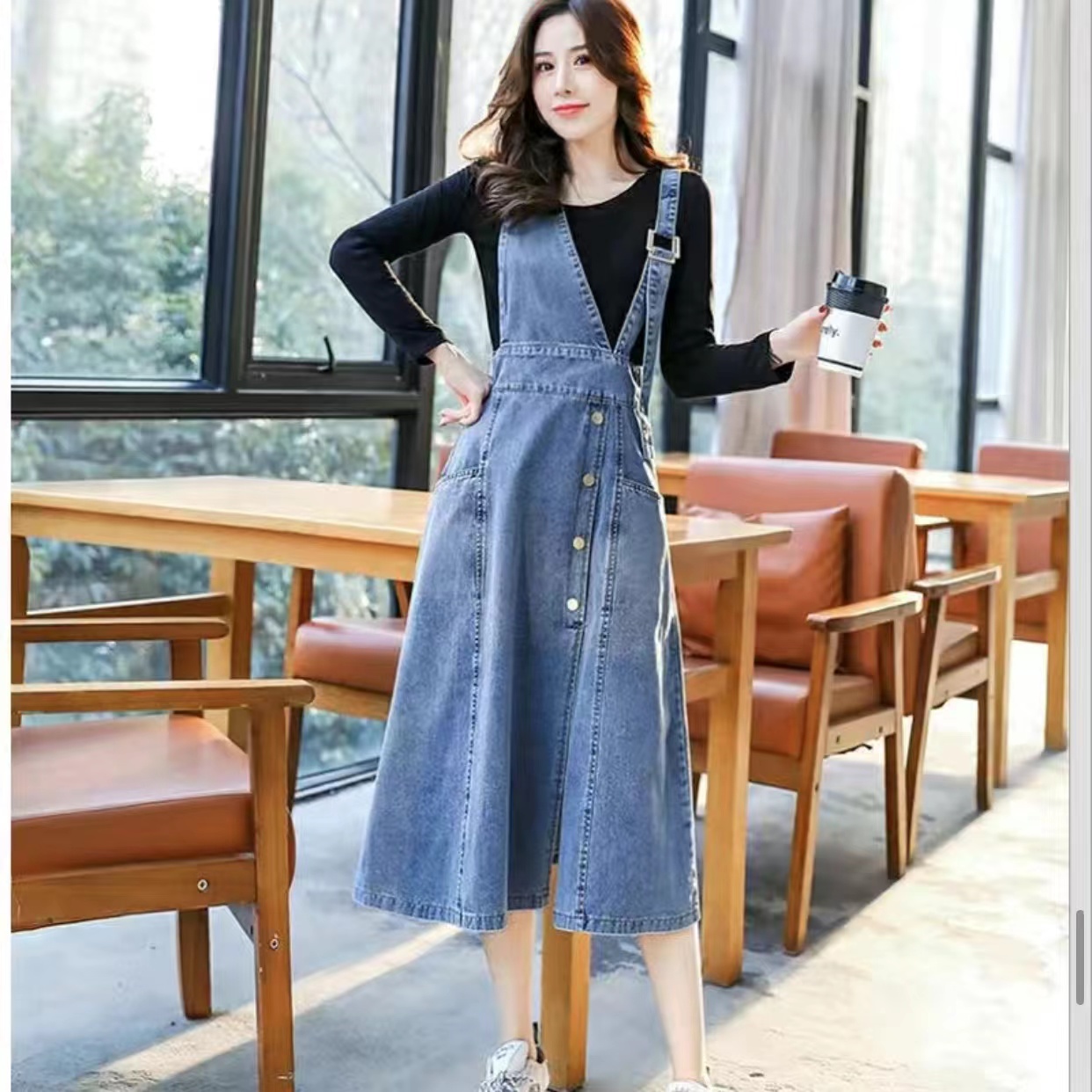 ロングワンピース オールインワン デニ