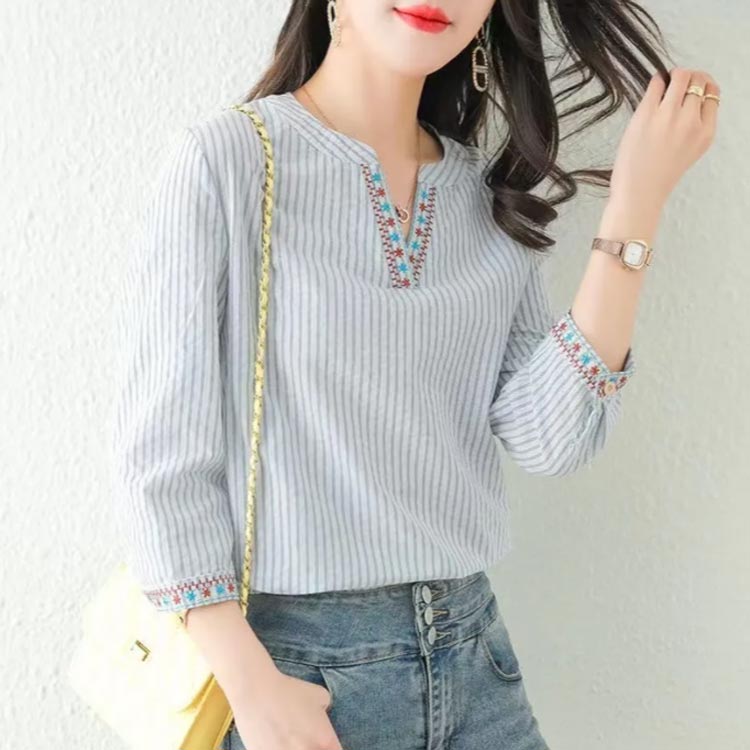 ナチュラルな風合い漂う刺繍ブラウス ス