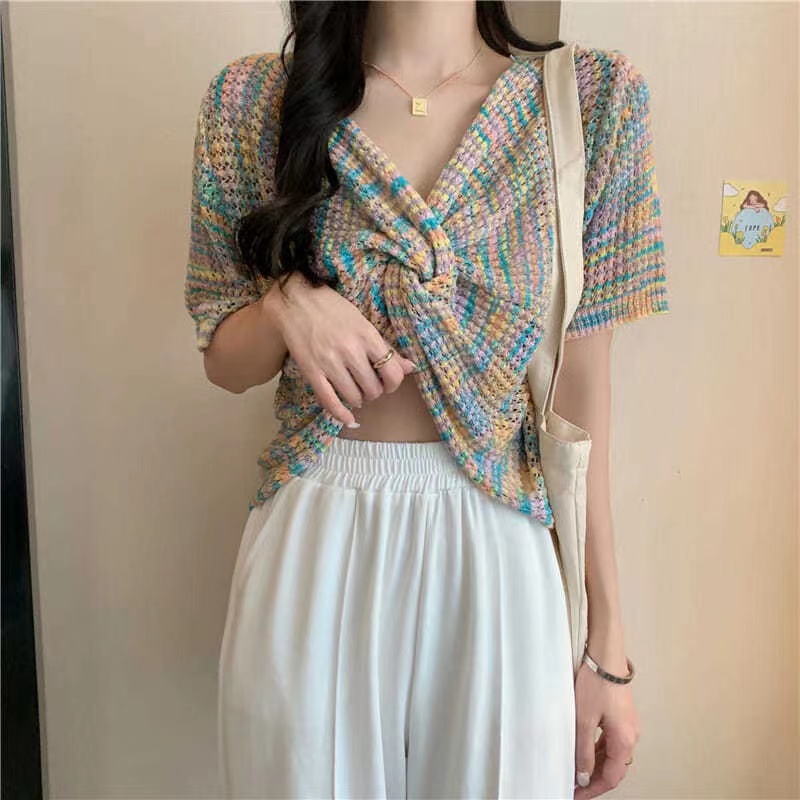 トップス レディース 夏 ニット 虹色