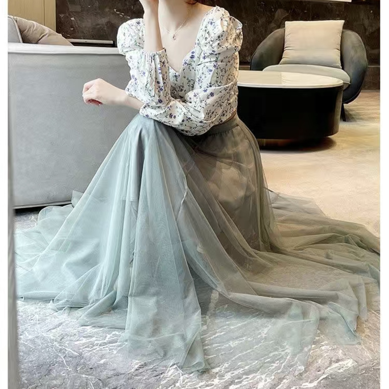 シフォンブラウス シアーブラウス ボリューム袖