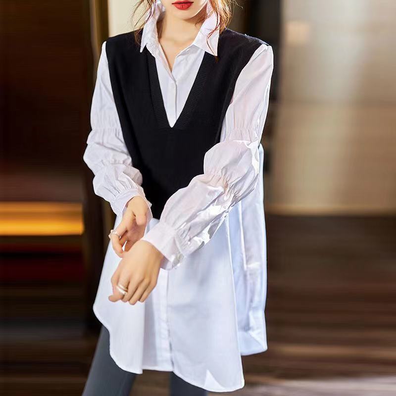 シアースリーブ ドッキングシャツ ボウタイシャツブラウス