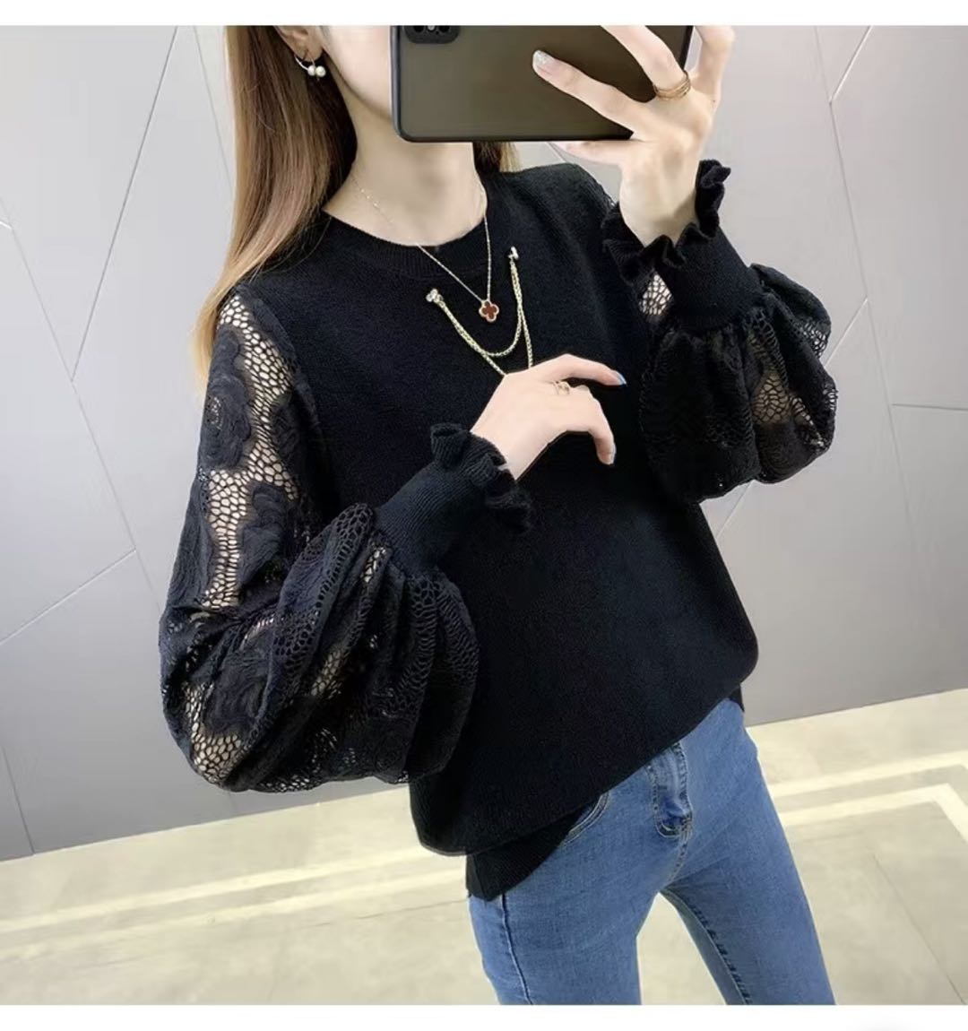 ニット 袖レース セーター レース袖