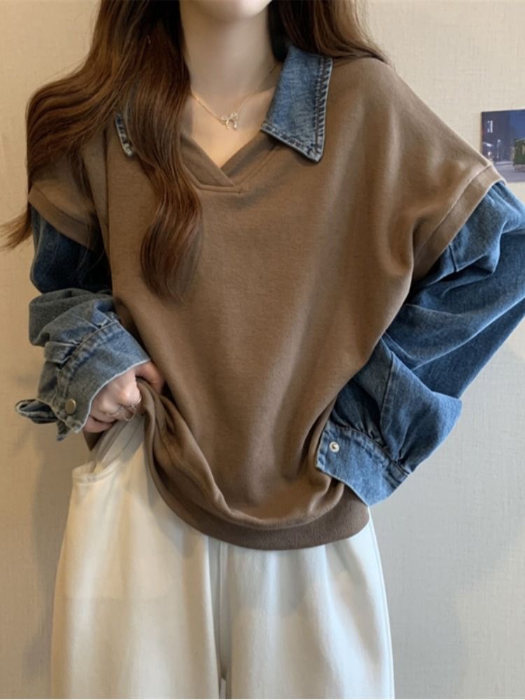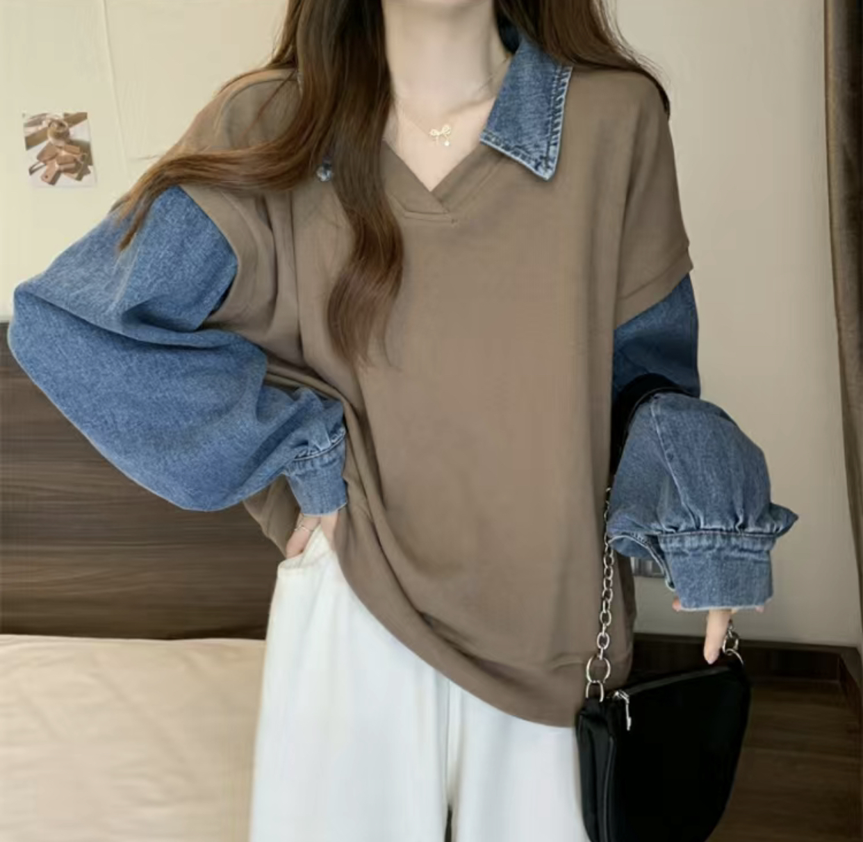 トレーナー レディース 重ね着風 異素