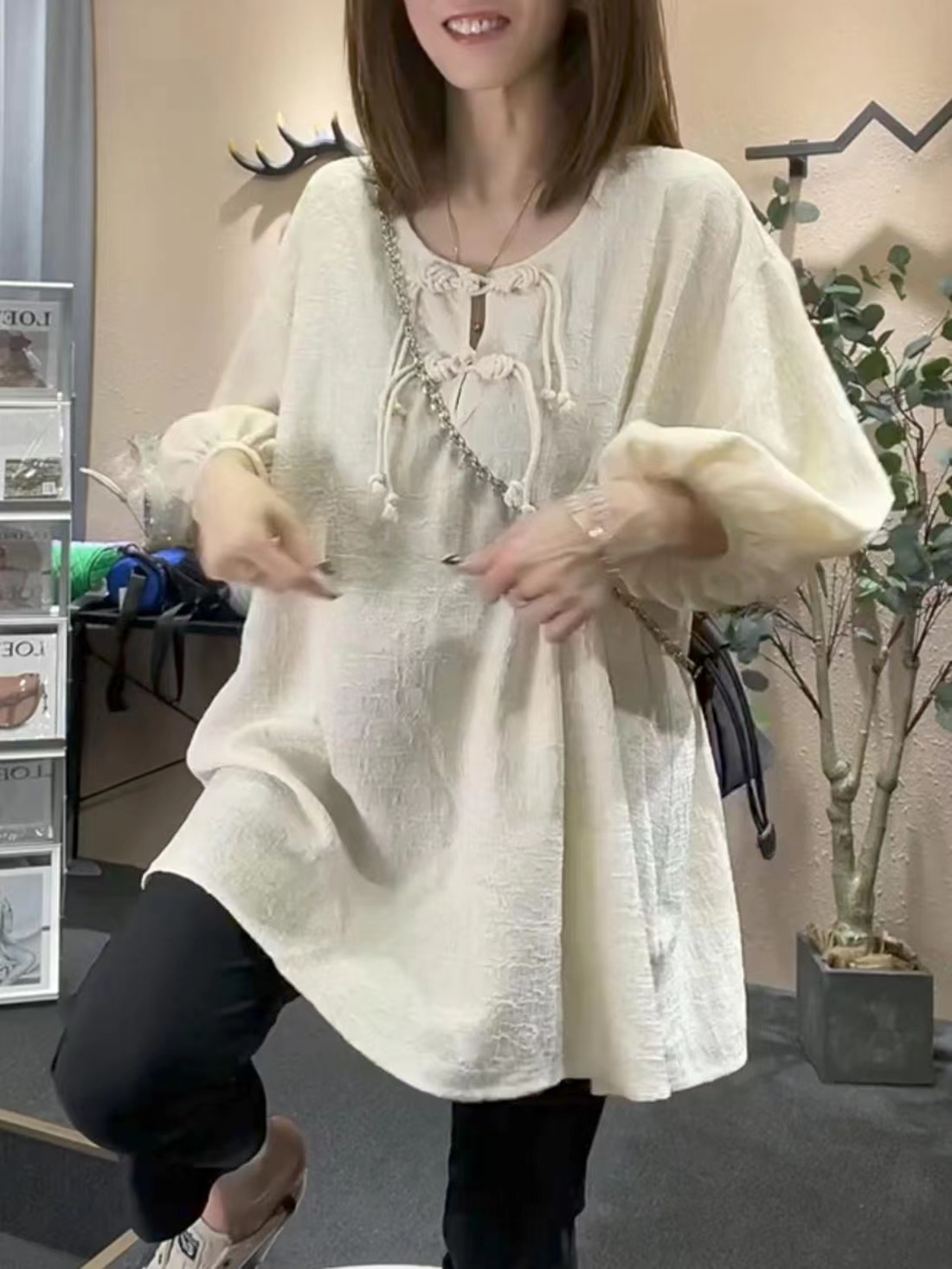 シフォンブラウス シアーブラウス ボリューム袖
