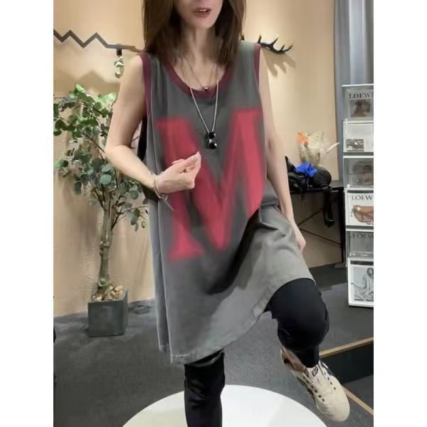 タンクトップレディースTシャツノースリーブUネックロゴプリント