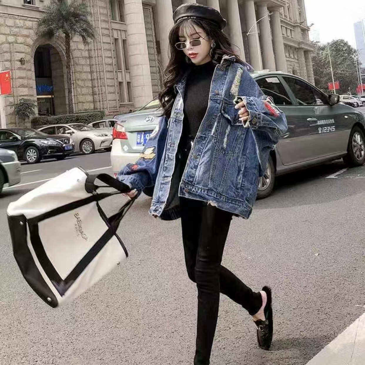 デニムパンツ ビジュー付き