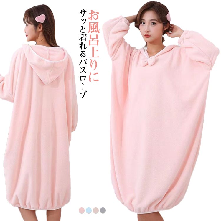 ゆったり 厚手 バスタオル フード付き ふんわり 冬 吸水性 長袖 バスローブ かわいい 軽量 可愛い ラップタオル もこもこ パイル 着るバスタオル プルオーバー ワンピース プール レディース 吸