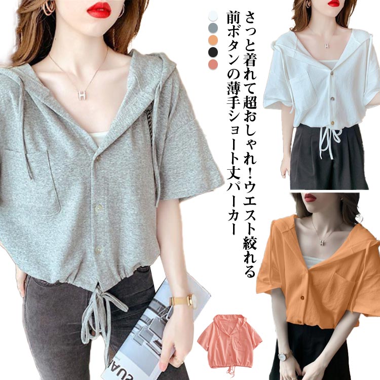半袖パーカー ショート丈 カジュアル ~4 可愛い 大人女性レディースファッション トップス パーカー