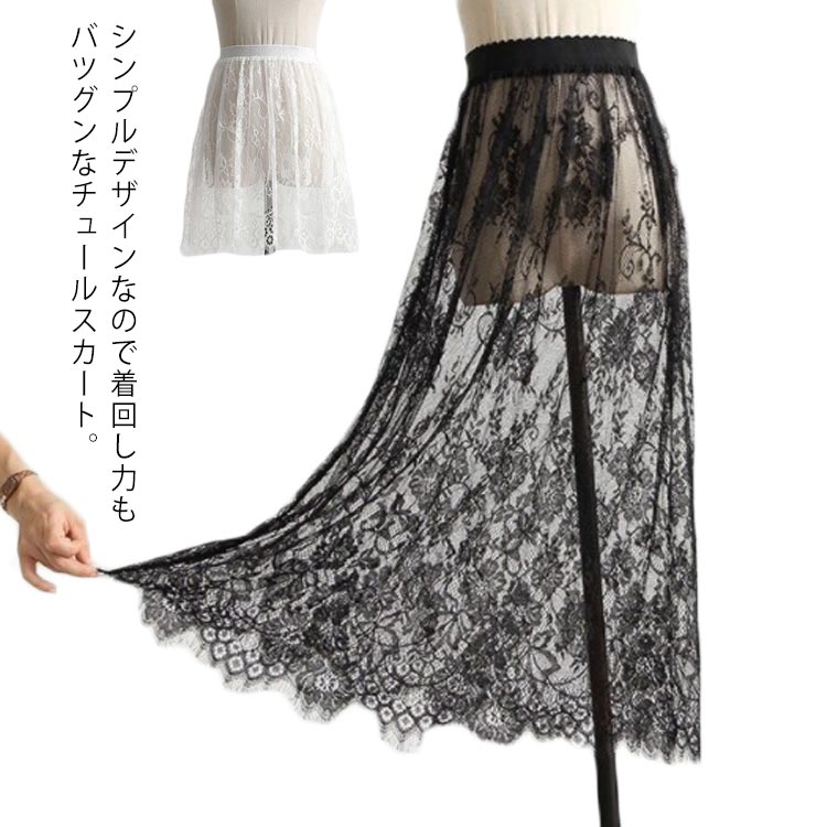 シースルースカート チュール レース インナー 可愛い 重ね着 3丈選べるレディースファッション ボトムス スカート