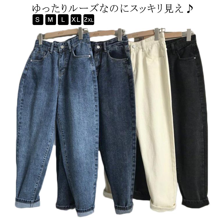 ルーズなのにスッキリ見え テーパードデニムパンツ テーパード パンツ サルエルレディースファッション ボトムス パンツ