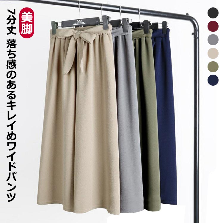 ガウチョパンツ 10分丈 7分丈 春夏 ワイドパンツ 可愛い キレイめ ロング丈 定番 きれいめガウチョパンツ