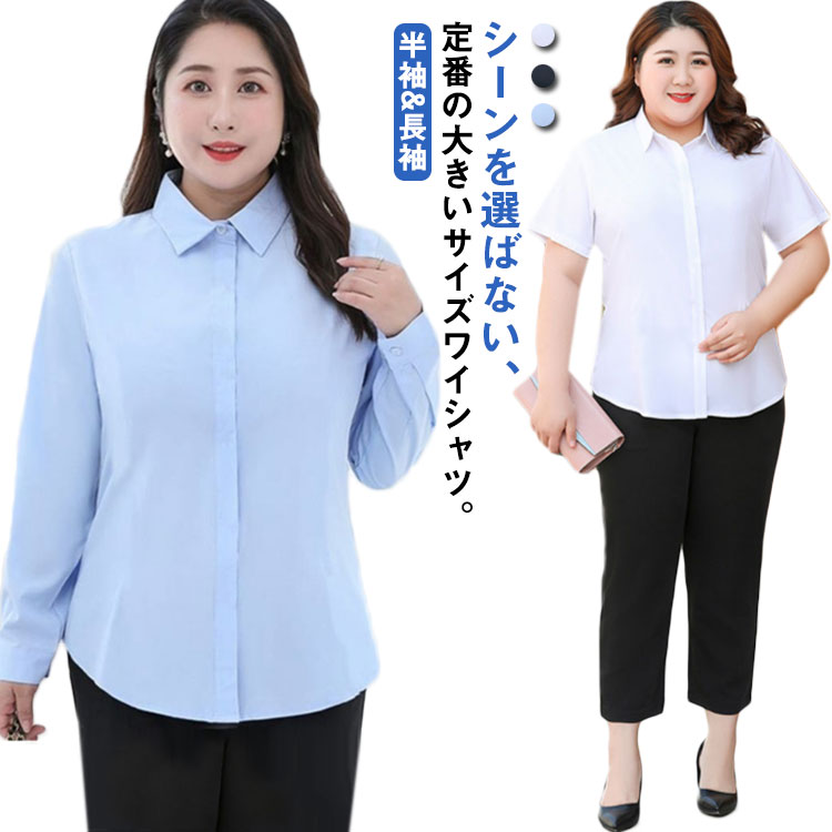 S-8XL 小さいサイズ 大きいサイズ 白シャツ ワイシャツ 洗える ビジネス 無地 ストレッチ シワになりにくい 洗える ビッグサイズ 隠しボタン