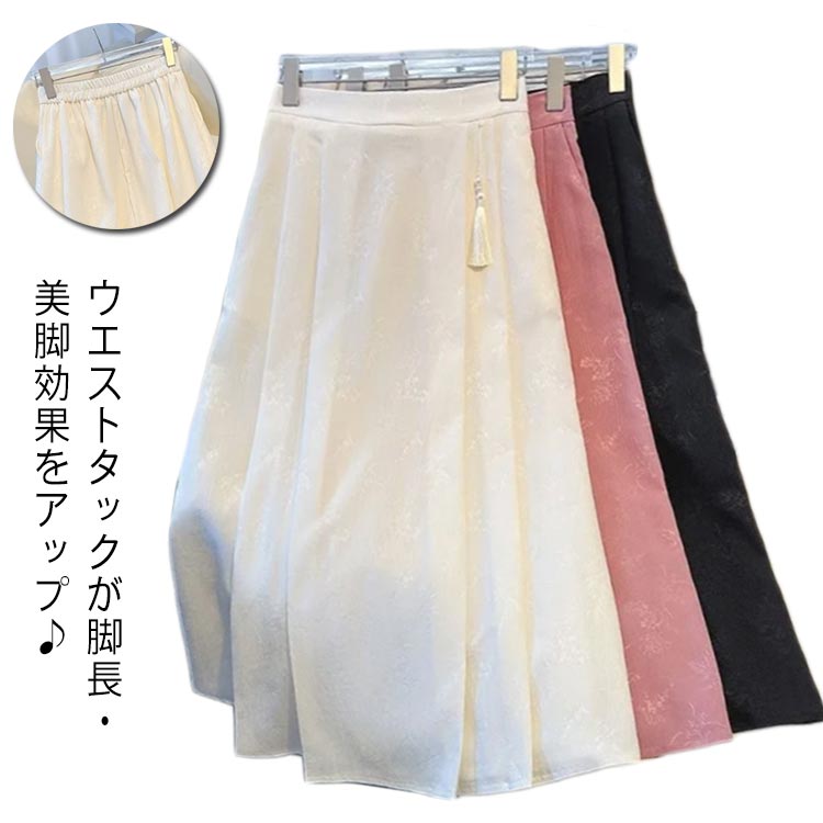上品なジャガード織りタックスカート エスニック おしゃ 民族風 フレアスカート エスニックレディースファッション ボトムス スカート