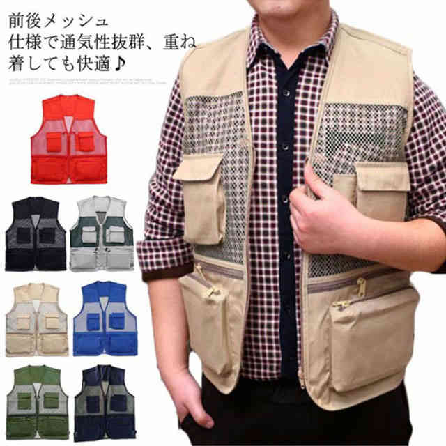 メッシュベスト フィッシングベスト 男女兼用 春夏 ミリタリーベスト ポケットベスト 多機能 多収納 キャンプ 散歩 お出かけ