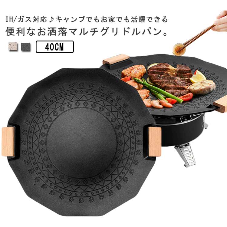 家でも外でも使える 木製ハンドル おしゃれな模様付き パン ih対応 ガス対応 熱伝導率高い 軽い キャンプ アウトドア ステーキ グリルパン