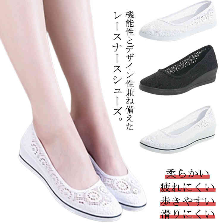 通気性抜群で履き心地良い ナース靴 花柄 レース クッション吸収 柔らかい 疲れにくい 歩きやすい 滑りにくい