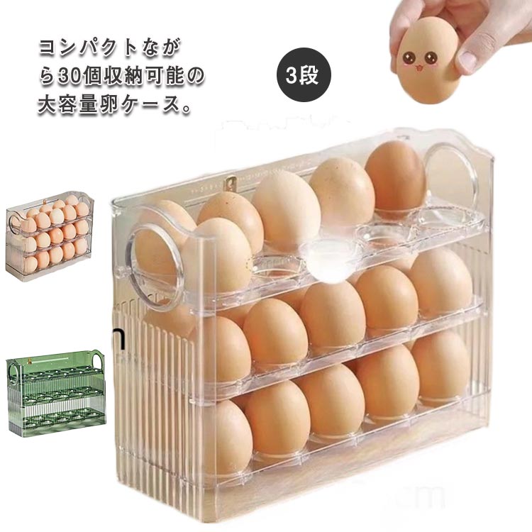 3段式でたっぷり収納 上の2段は自動回転できるから卵取り出しやすい たまご 冷蔵庫収納エッグ コンパクトサイズ 大容量