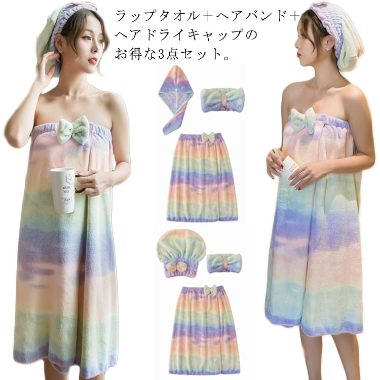 素敵な色合いとリボンが可愛い♪ ヘアドライタオル 着れるタオル ずり落ちない バスタオル おしゃれ日用品雑貨 文房具 手芸 タオル ラップタオル