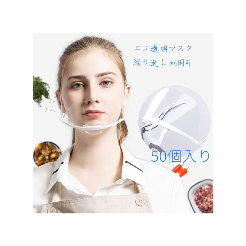 50枚セット 透明マスク プラスチックマスク エコ 繰り返し利用 マスク 飛沫対策 マスク 透明 経済 シールド 飲食店 調理師用マスク 医療 美容 接客 衛生日用品 業務用マスク
