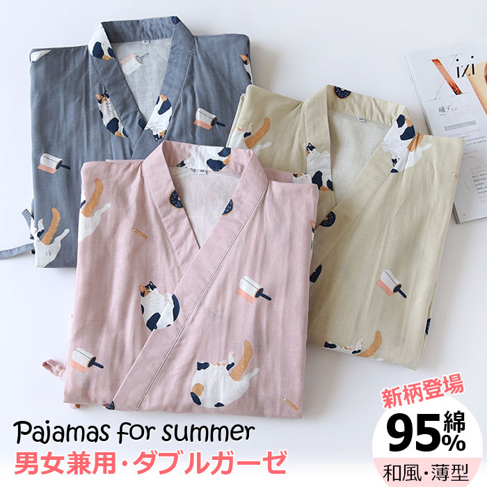 可愛い招き猫 ワンピース 綿% 膝丈 おしゃれ カップルペアルックお揃い服 20代30代40代 春夏 前開き 夏の快適パジャマ かわいい柄 プレゼント ギフト 夏