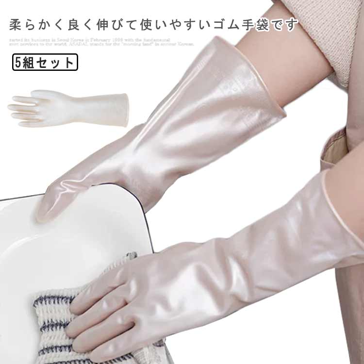 ゴム手袋 しない 手荒れ 食器洗い レディース 洗い物 ロンググローブ キッチン掃除 かわいい おしゃれ 5組セット ロングスリーブ 掃除 作業用 トイレ掃除 浴室掃除 クリーニング ロング 浴槽掃除