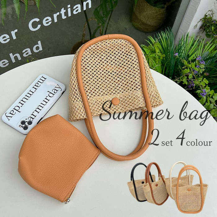 2WAY カゴバッグ 2点セット Mini bag プレゼント 贈り物 ギフト 母の日 ♪バッグ 小物 ブランド雑貨 バッグ レディースバッグ かごバッグ